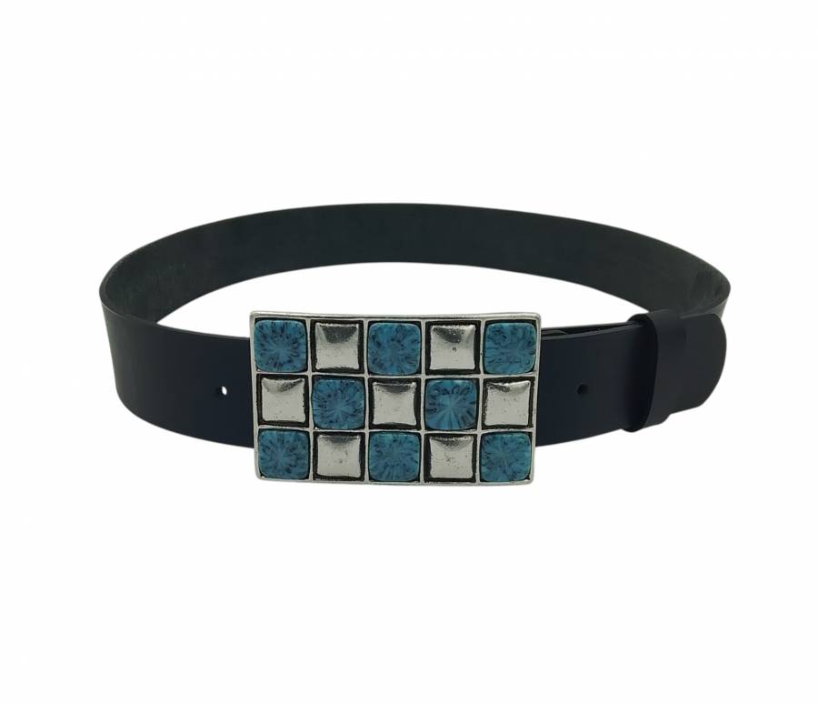 • Μεταλλική αγκράφα σε χρώμα Ασημί Νίκελ με γαλάζιες πέτρες  με νερά σε στυλ σκακιέρα