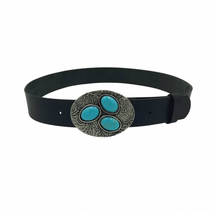 • Μεταλλική αγκράφα σκαλιστή σε χρώμα Ασημί και τρείς γαλάζιες πέτρες οβάλ με νερά