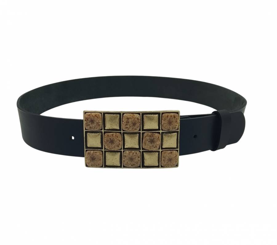 • Μεταλλική αγκράφα σε χρώμα μπρονζέ και ταμπά πέτρες  με νερά σε στυλ σκακιέρα